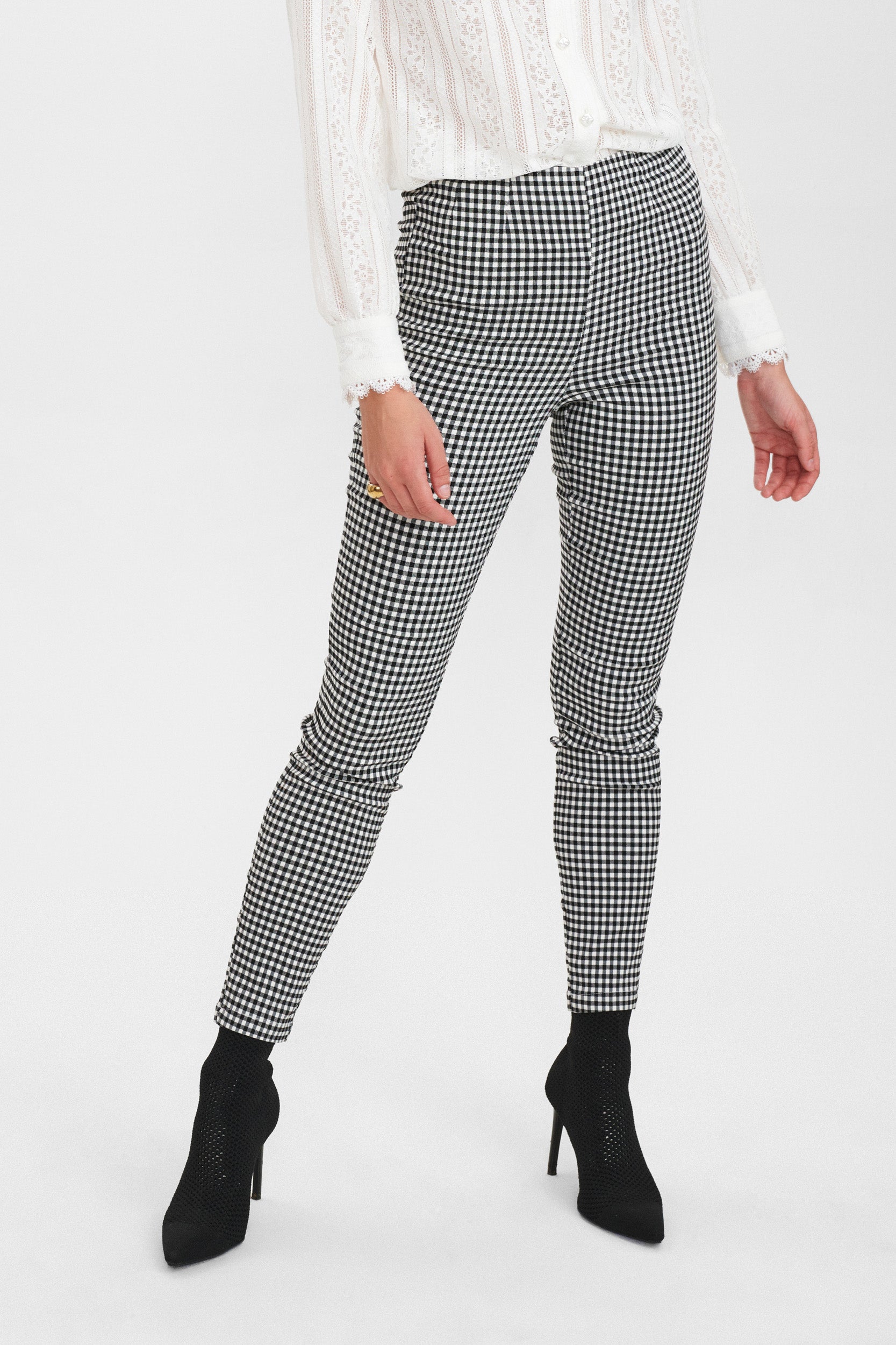 Lækker legging fra Nümph i sort og hvid ternet print. Leggings lukkes med lynlås i siden.