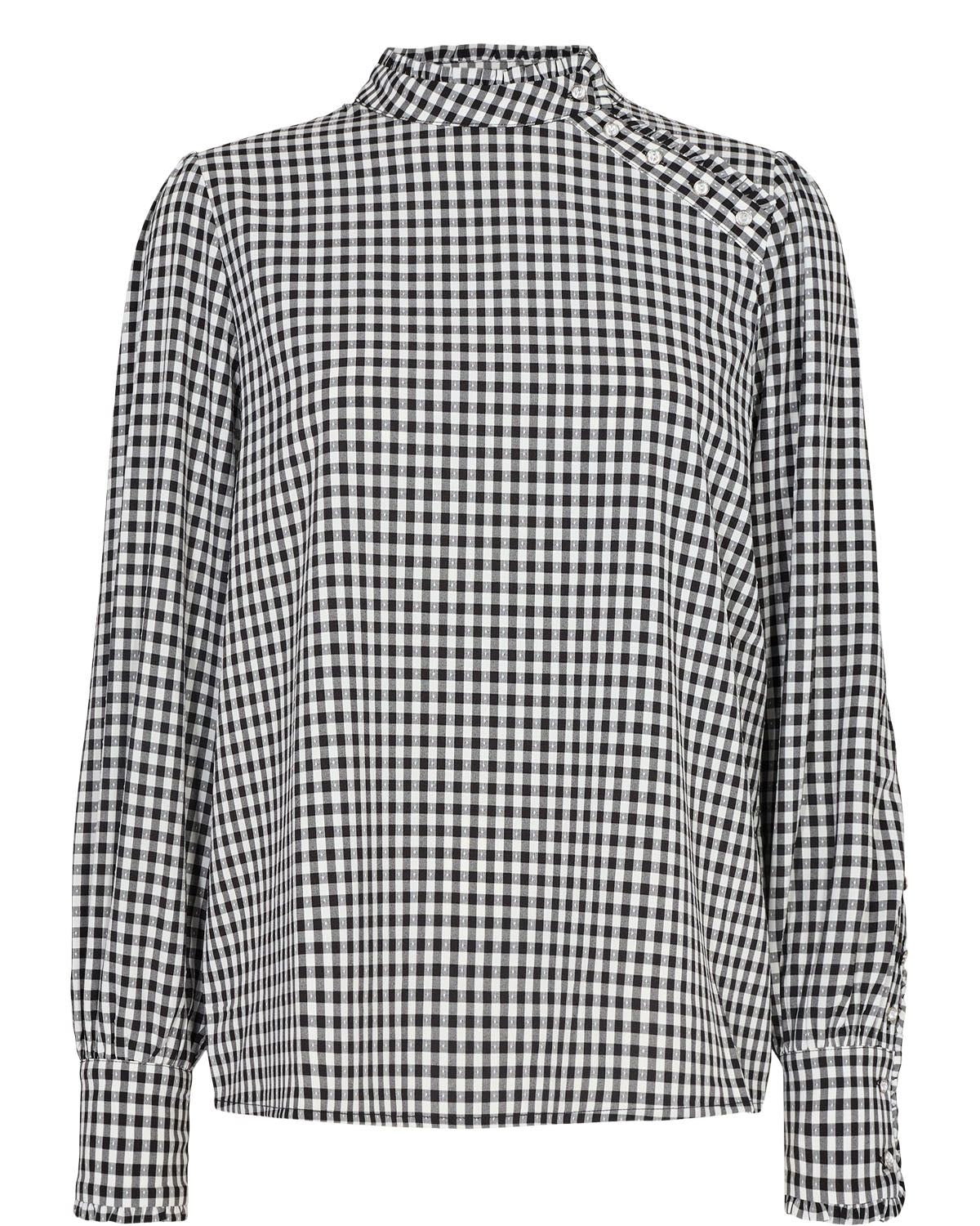 Skøn bluse fra Nümph i sort og hvid ternet mønster. Blusen har lange ærmer og de fineste detaljer i form af knapper ved håndledet og kravebenet.