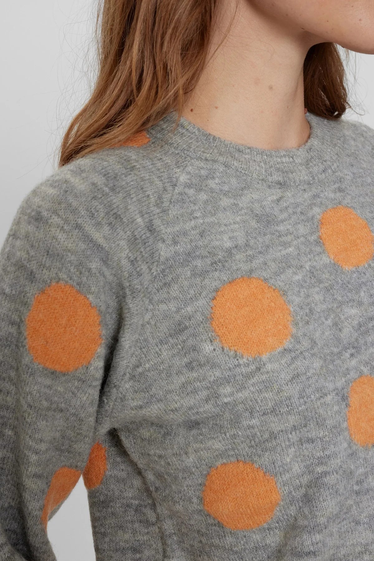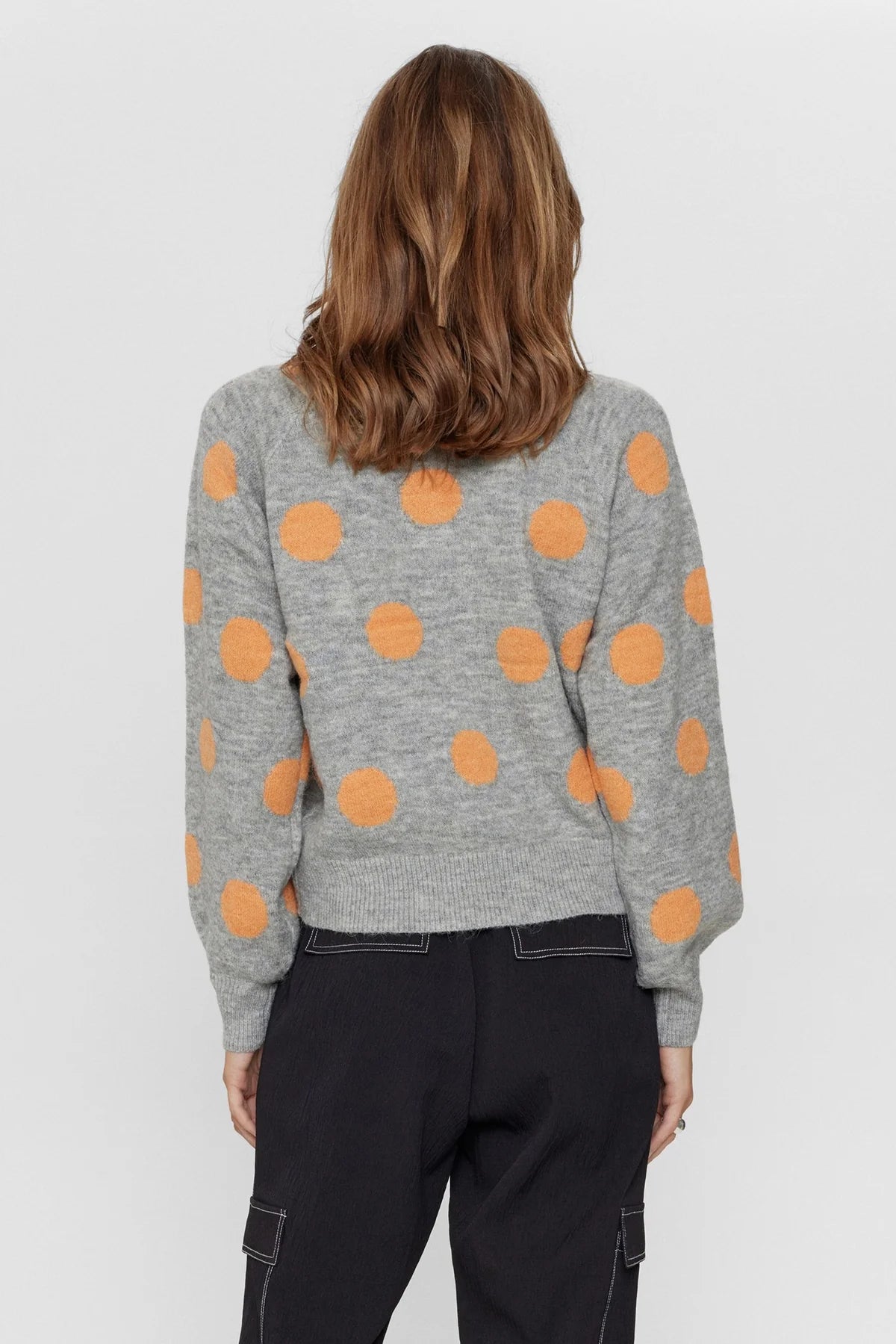 Fedeste strik fra danske Nümph med deres "signatur prikker". En lækker strikbluse med super fede orange bomber og en løs pasform.