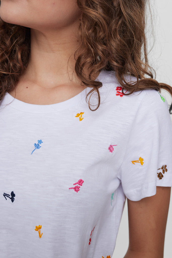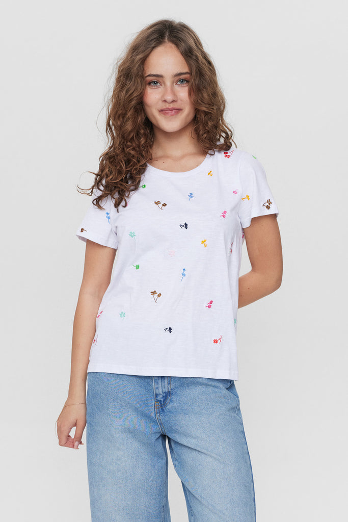 Sød t-shirt fra Nümph i ren bomuld. T-shirten har en løs pasform og er dekoreret med små blomster.