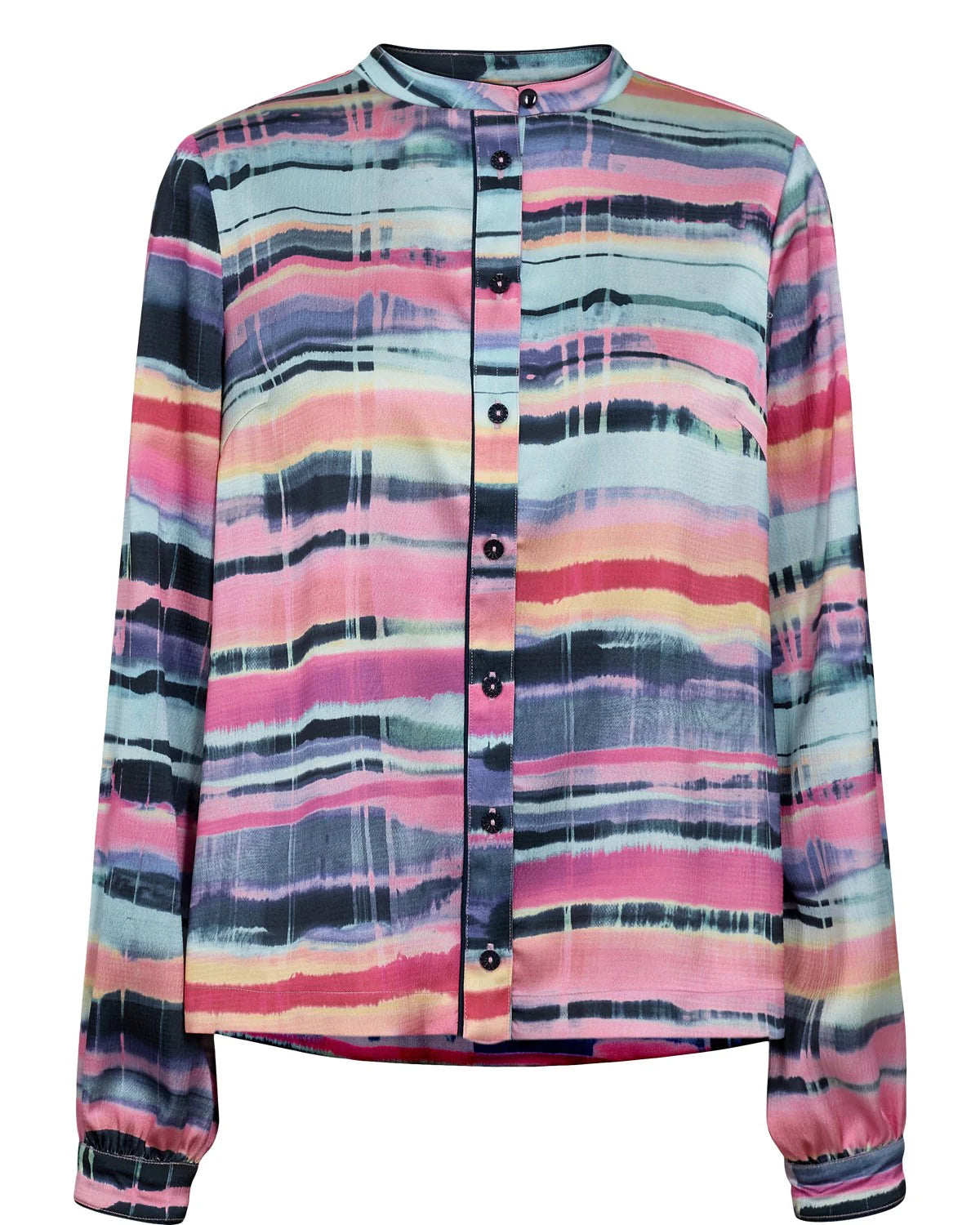Farverig skjorte fra altid skønne Nümph. Skjorten er gennemknappet med kinakrave og gennemgående farverigt mønster.