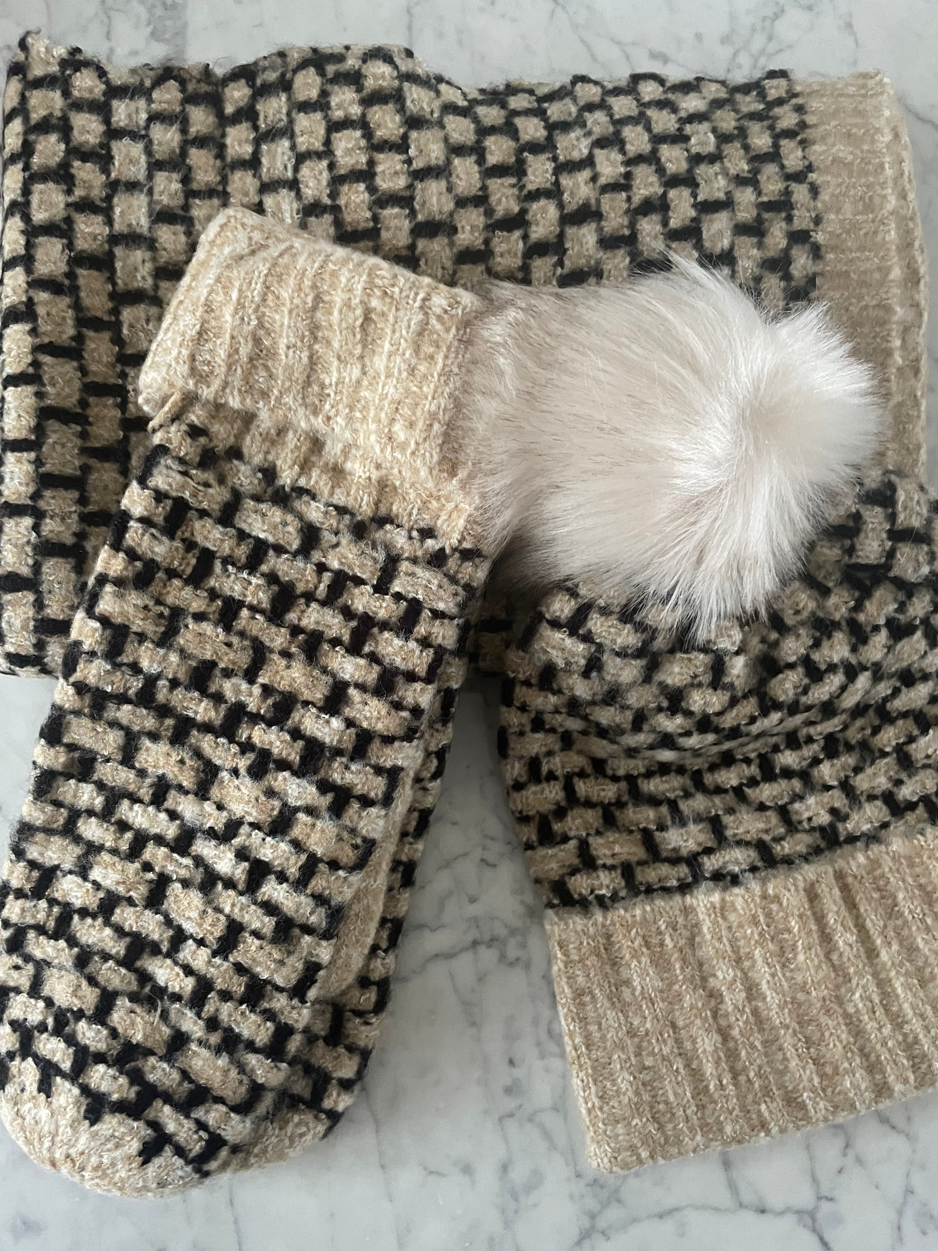 Super cool sæt fra danske Numph bestående af halstørklæde, luffer med fleece foer og hue med kvast.