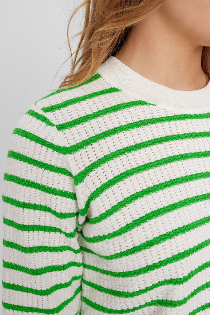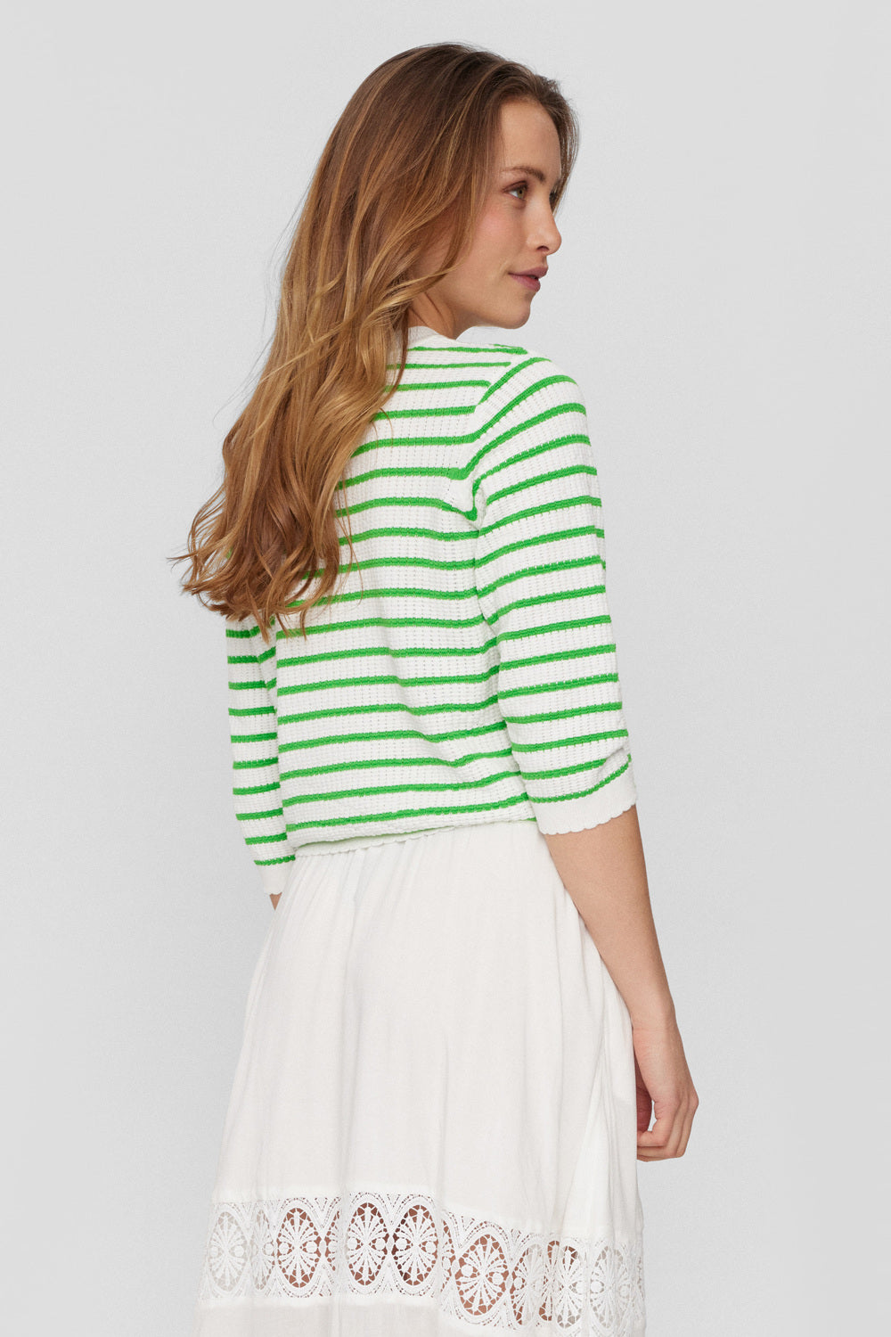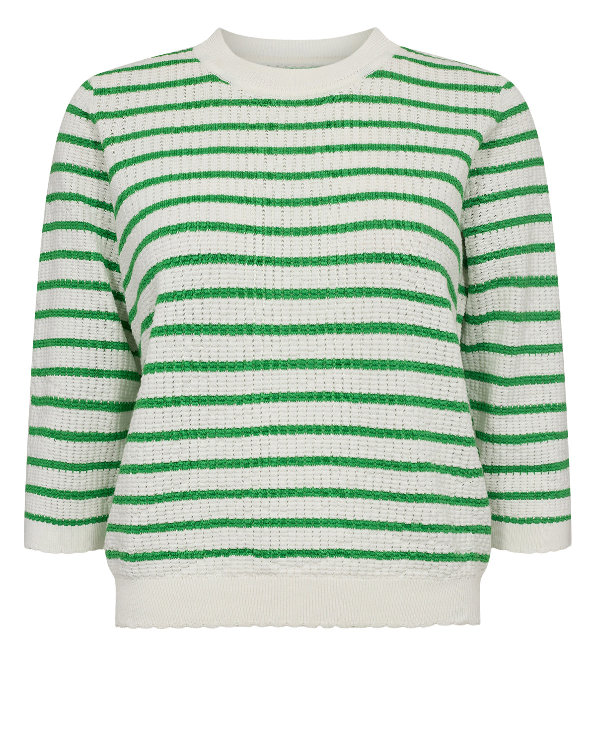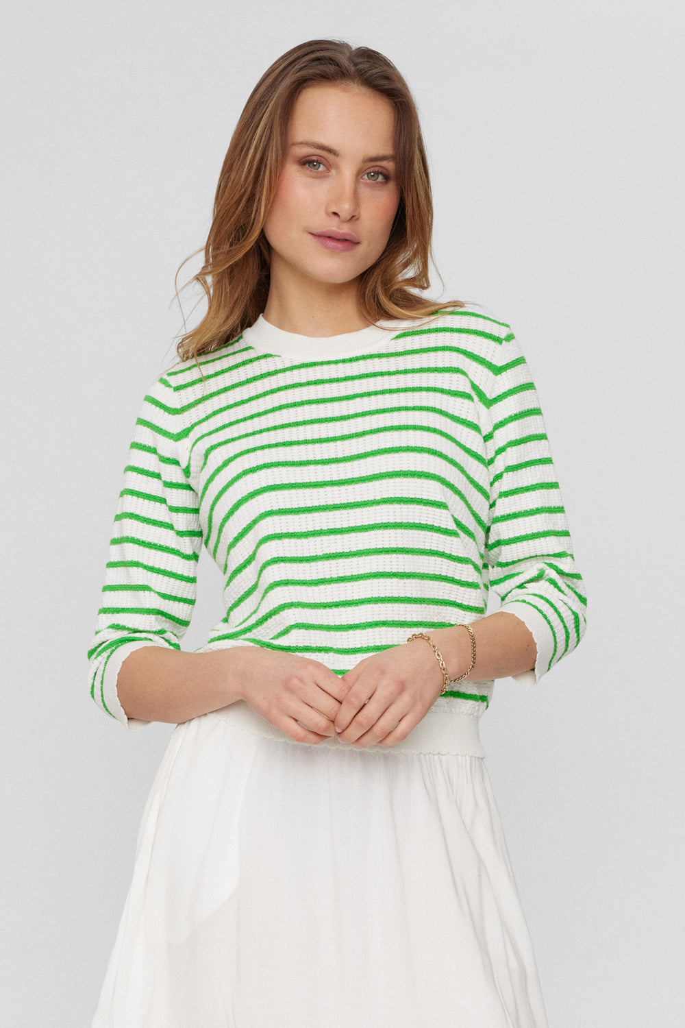 Flot strik fra Nümph i en rib-kvalitet med striber. Stikken er i ren bomuld og har 3/4 ærmer.