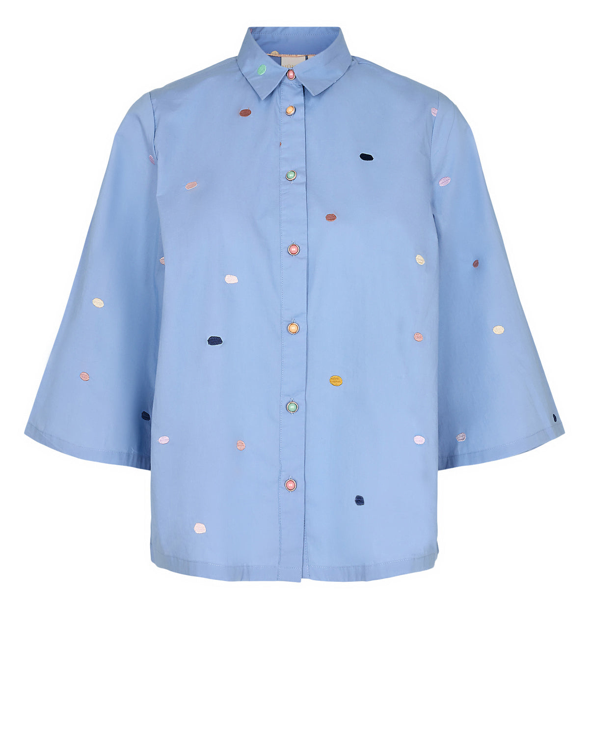 Skøn skjorte fra danske Numph. Skjorten har krave, 3/4 ærmer og de smukkeste knapper i forskellig farvet porcelæn med guld kant.