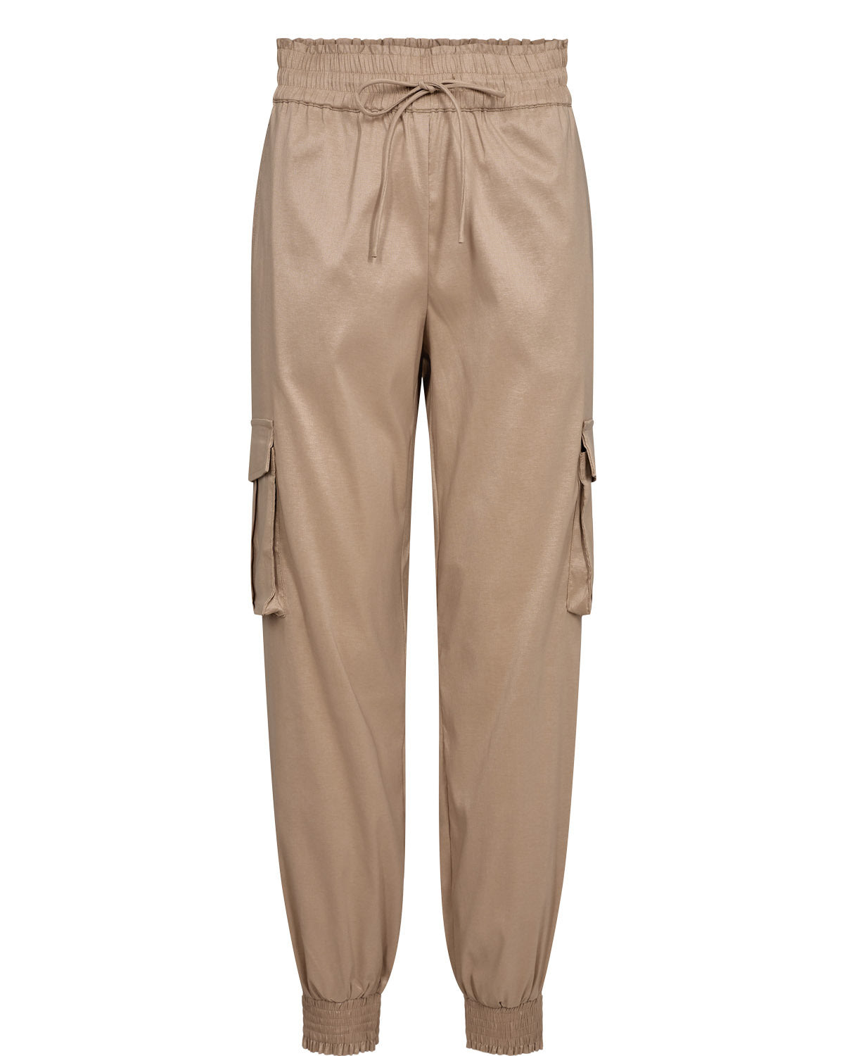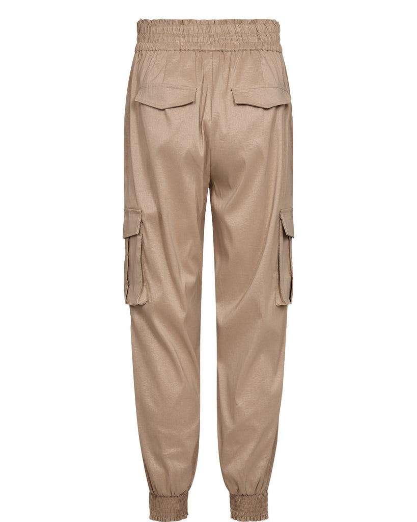 Top fede cargo bukser med en flot shiny overflade fra Nümph. Bukserne har elastik og snøre i taljen, lommer på siderne og elastik ved anklerne. STORE I STØRRELSEN - GÅ ET NUMMER NED
