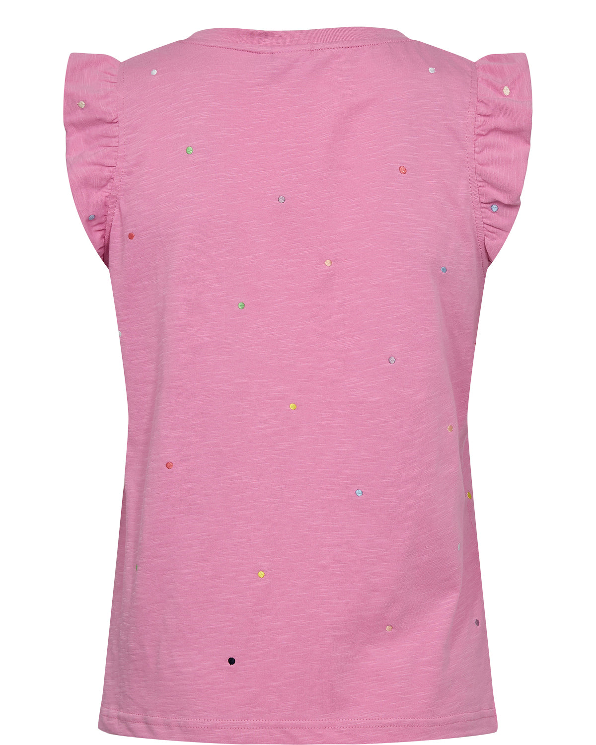 Skøn t-shirt i ren bomuld fra danske Nümph. T-shirten har rund halsudskæring og flot flæsedetalje med ærmeåbningen.