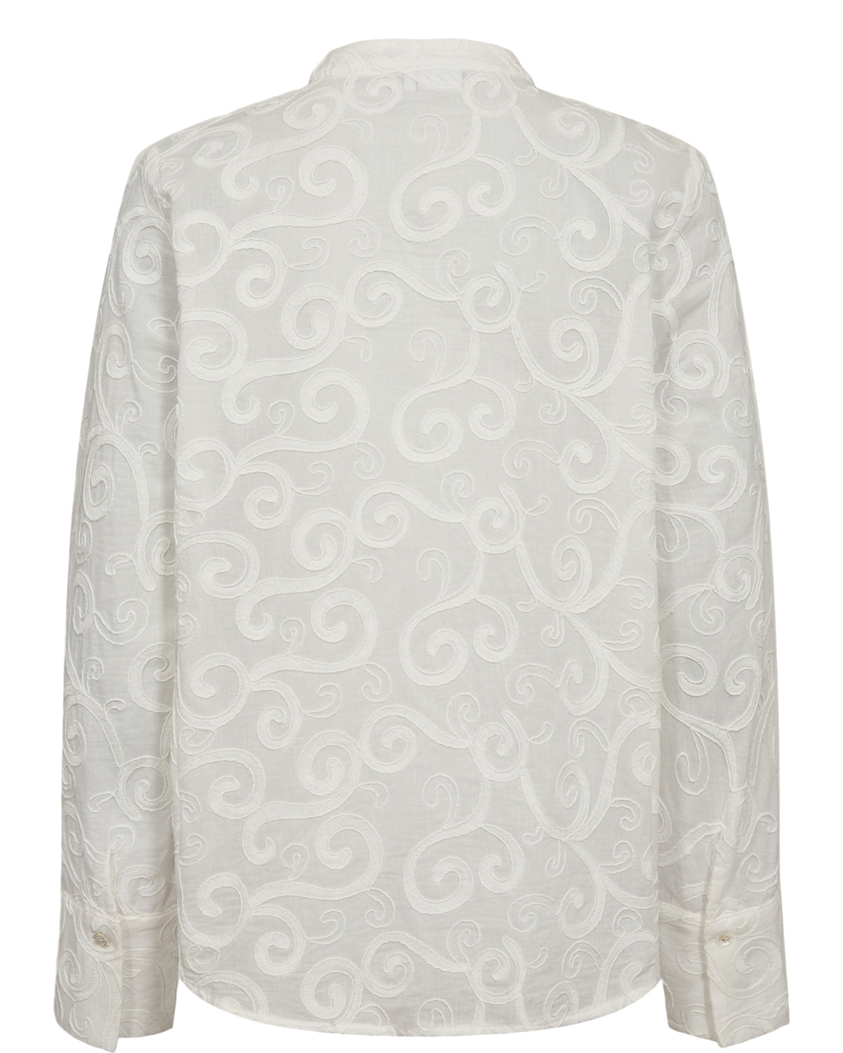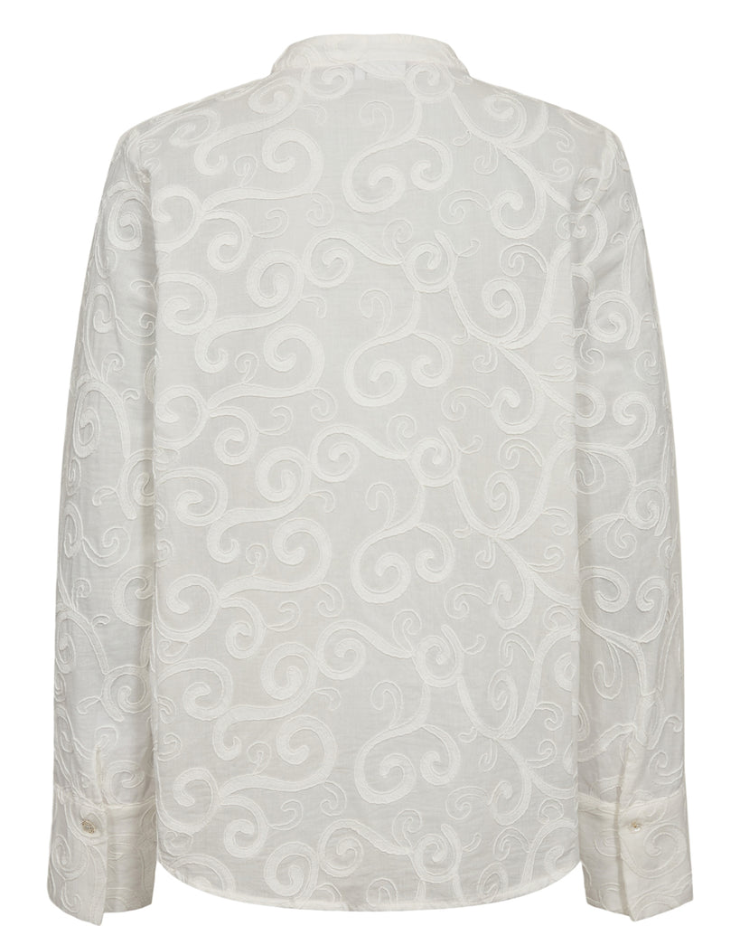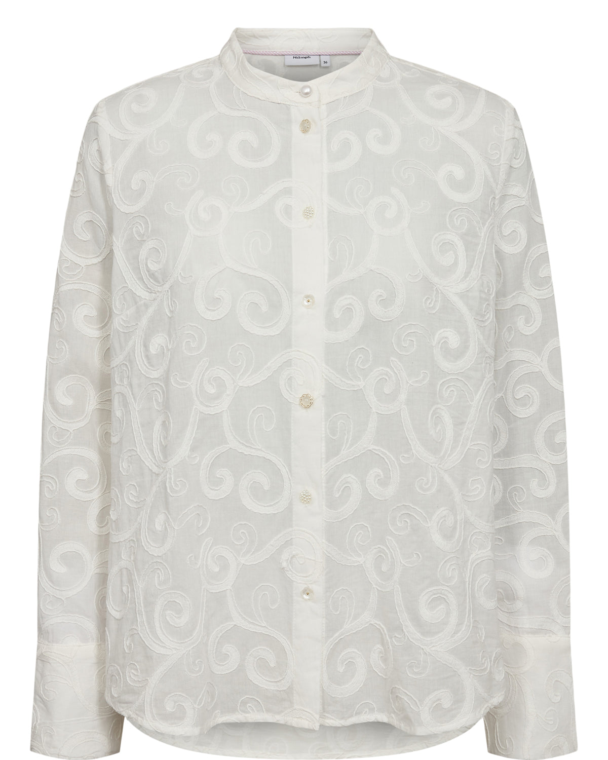 Den smukkeste hvide skjorte bluse fra Nümph med smukt tone-i-tone print. Der er som altid kræset for detaljen og påsat de fineste knapper for et eksklusivt look.