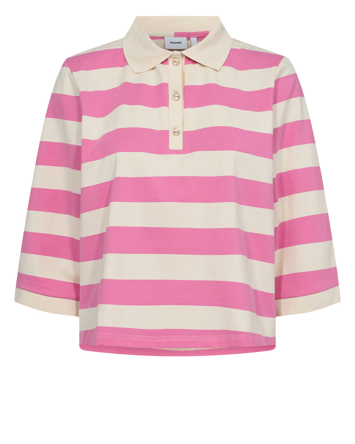 Cool polo bluse fra danske Nümph i ren bomuld. Poloen er i skønne striber og har stolpelukning med fine knapper.