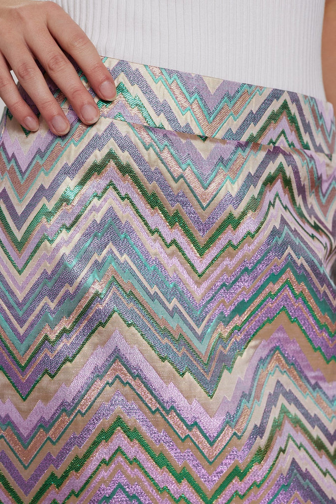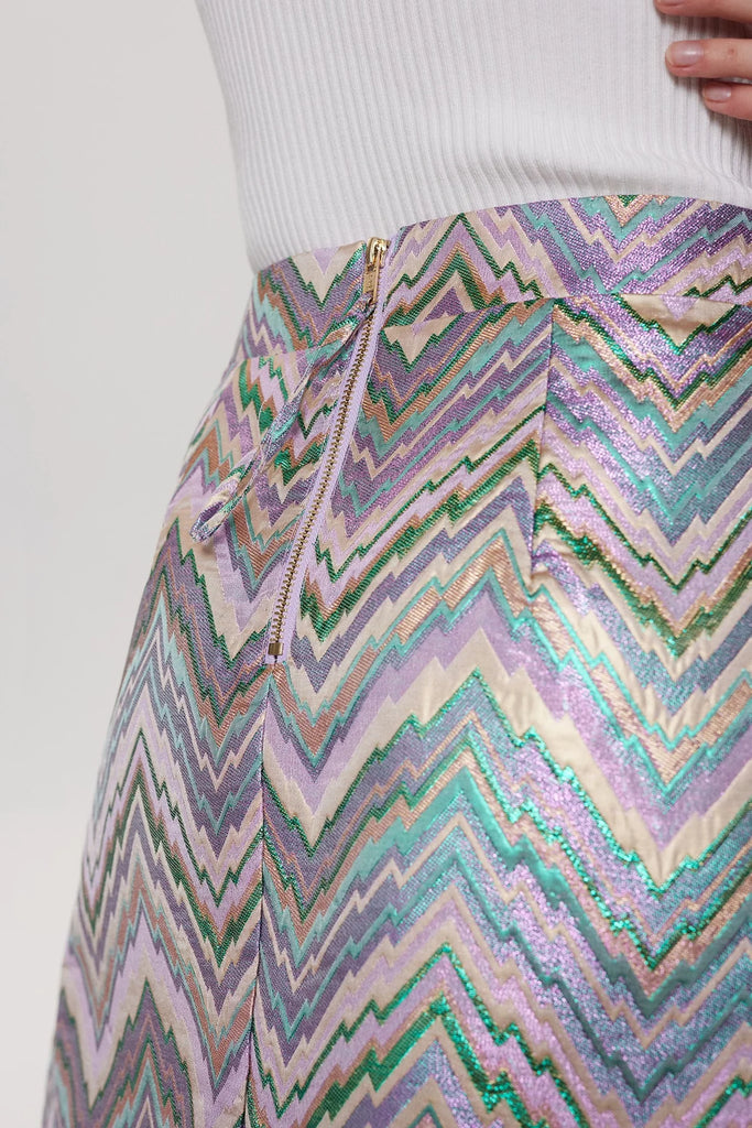 Smuk og elegant nederdel i fine farver. Let glimmertråd indvævet. Løs A-pasform.