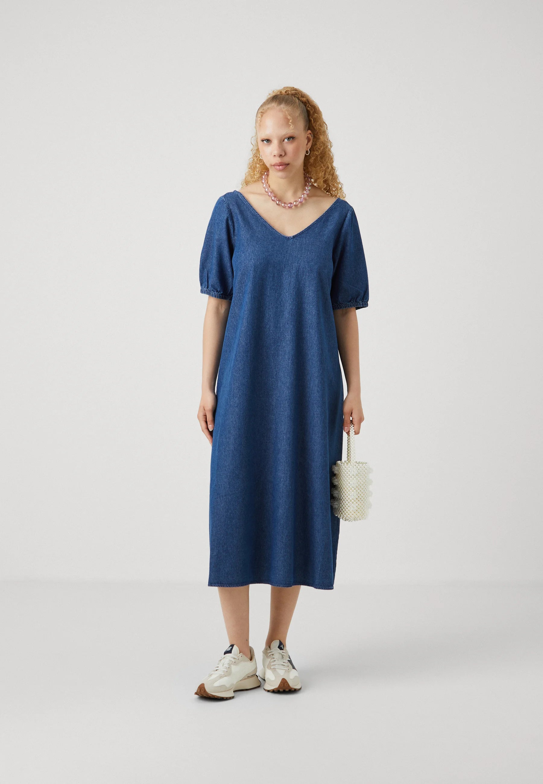 Pieces - Amag V-Neck Long Dress Blue Denim