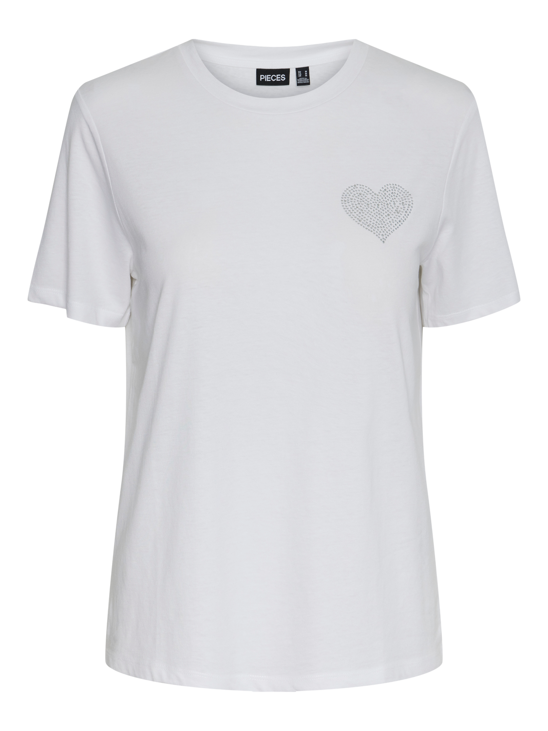 Skøn t-shirt fra danske Pieces i en regular pasform. t-shirten er flot dekoreret med similisten der danner et hjerte.