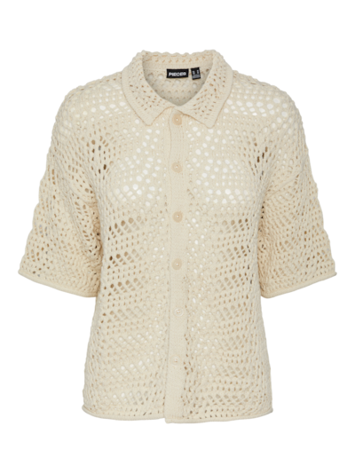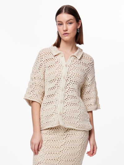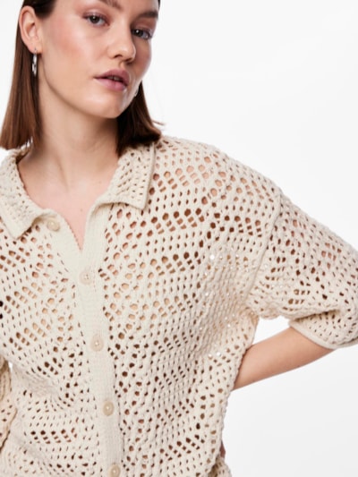 Skøn crocket cardigan fra Pieces. Cardiganen har en løs pasform og er i en flot beige farve.