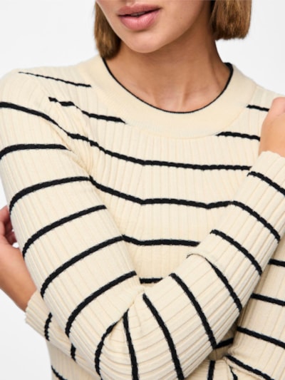 Pieces - Crista Ls O-neck Birch/Black Narrow
