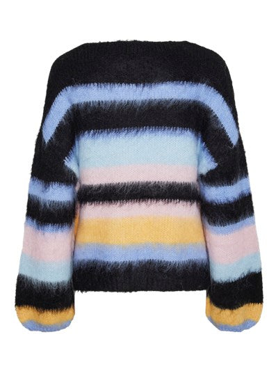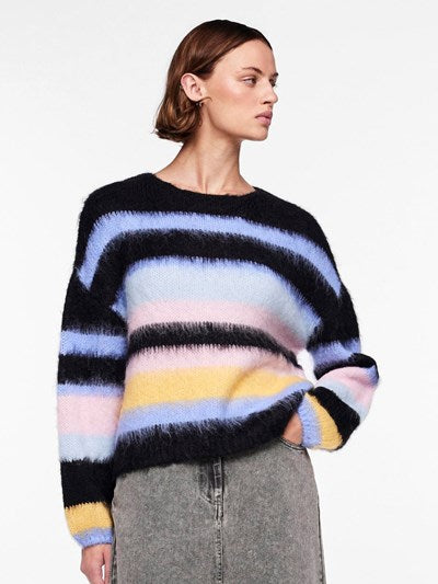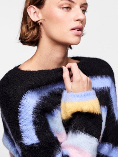 Fedeste strik fra Pieces i nogle fede forårsfarver. Strikken har vandrette striber, rund halsudskæring og lange ærmer.