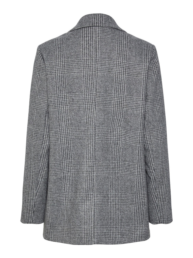 Cool blazerjakke fra Pieces i et flot grå ternet print. Jakken kommer i en tweed kvalitet og lukkes fortil med knapper. TIL DEN STORE SIDE GÅ ET NUMMER NED
