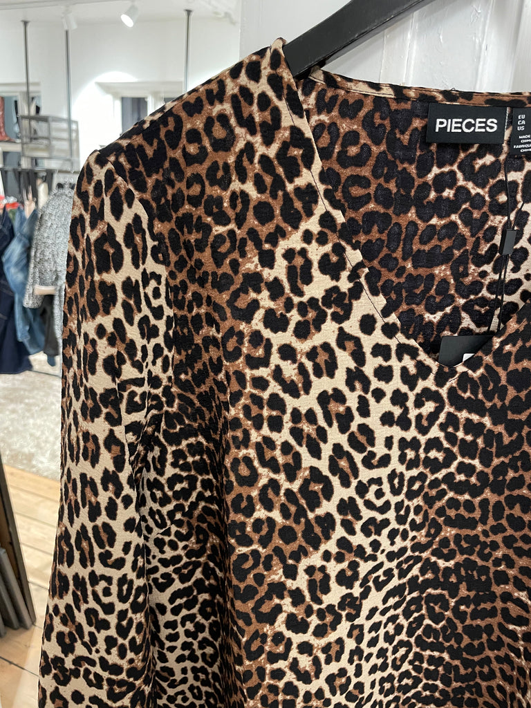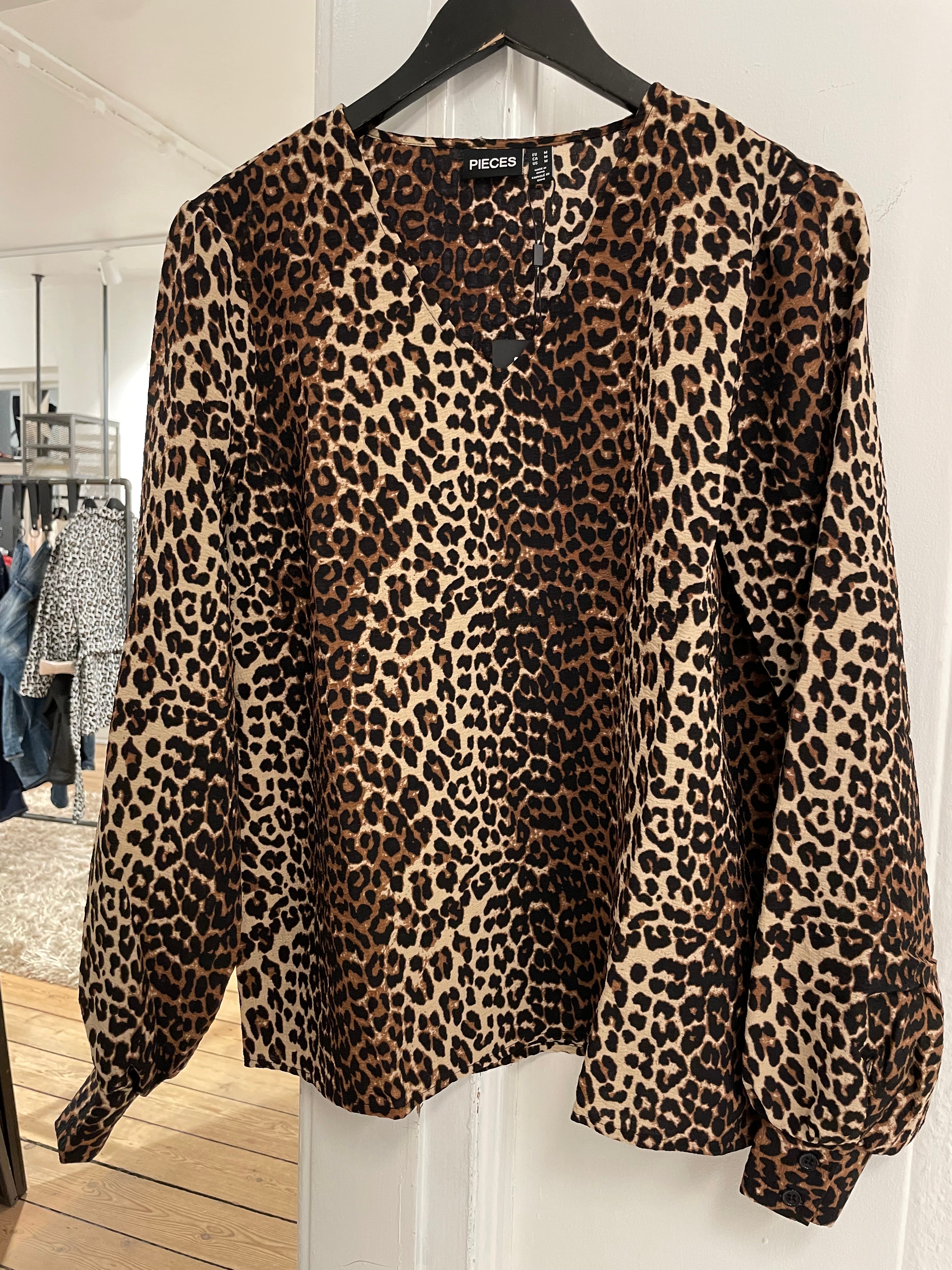 Skøn leo bluse fra Pieces. Blusen har lange ærmer med let vidde, v-hals og i et let materiale.