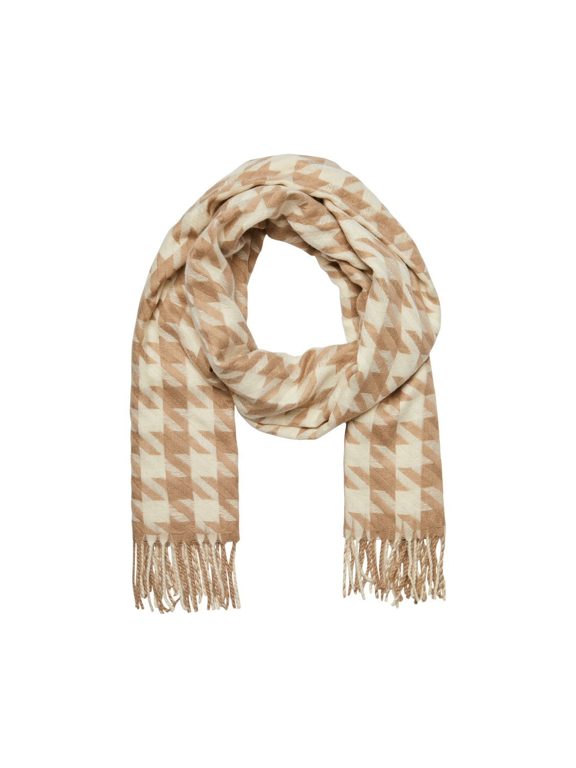 Lækkert tørklæde fra Pieces i et fint print af brunlige nuancer.