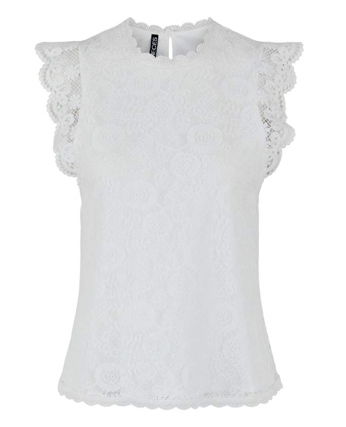 Pieces Olline Lace top - White er perfekt til alle slags fester og kan bruges til alle slags underdele.