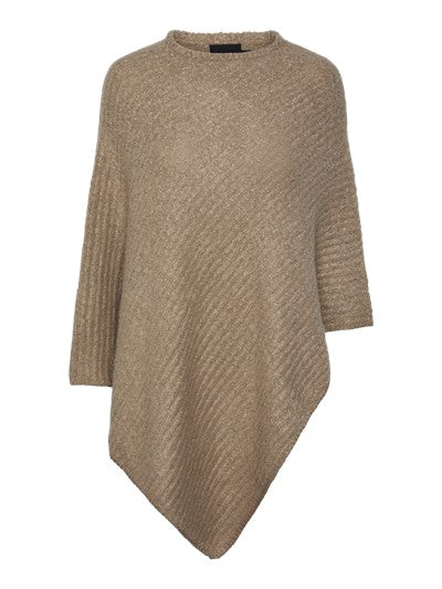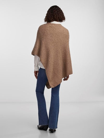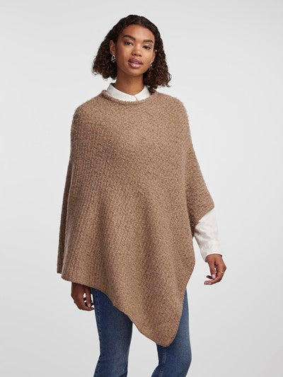 Lækker blød poncho fra danske Pieces. Ponchoen kommer i en flot lys brun farve, har en løs pasform og går ned i v.