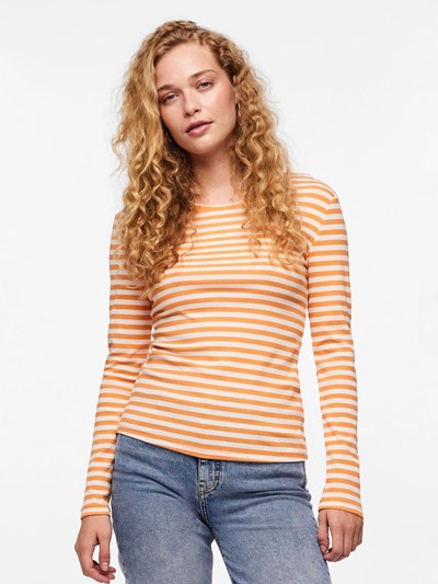 Pieces - Ruka LS Top Tangerine/Cloud Dancer