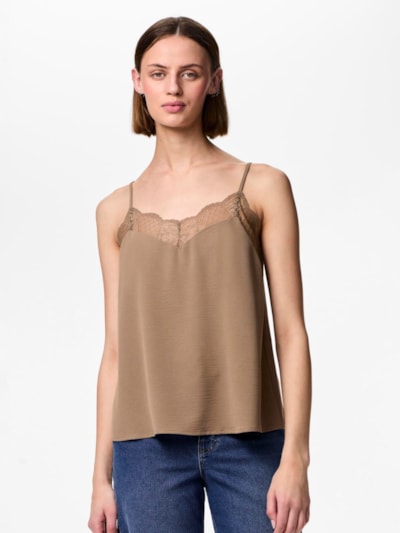 Skøn basis top fra Pieces med lille blondedetalje fortil. Toppen har en løs pasform og regulerbare stropper.