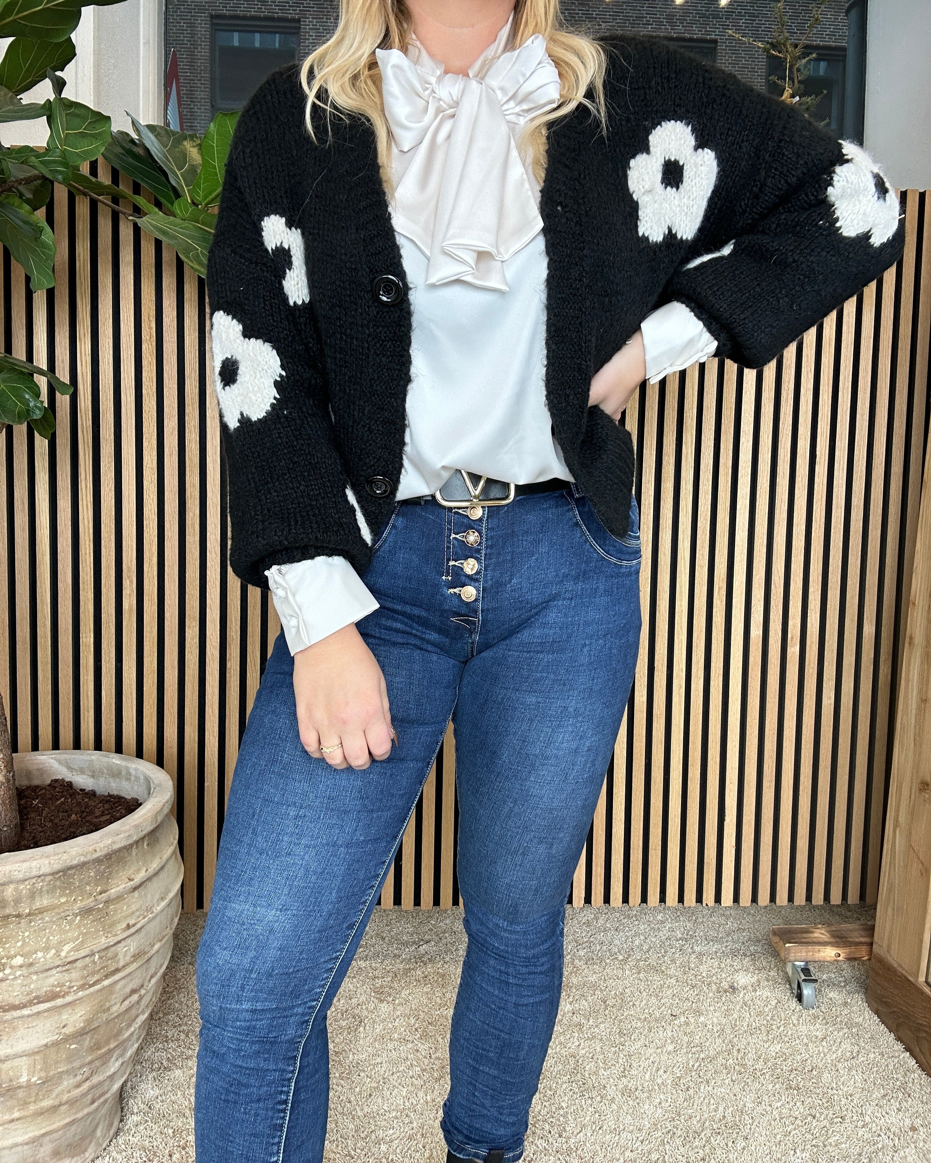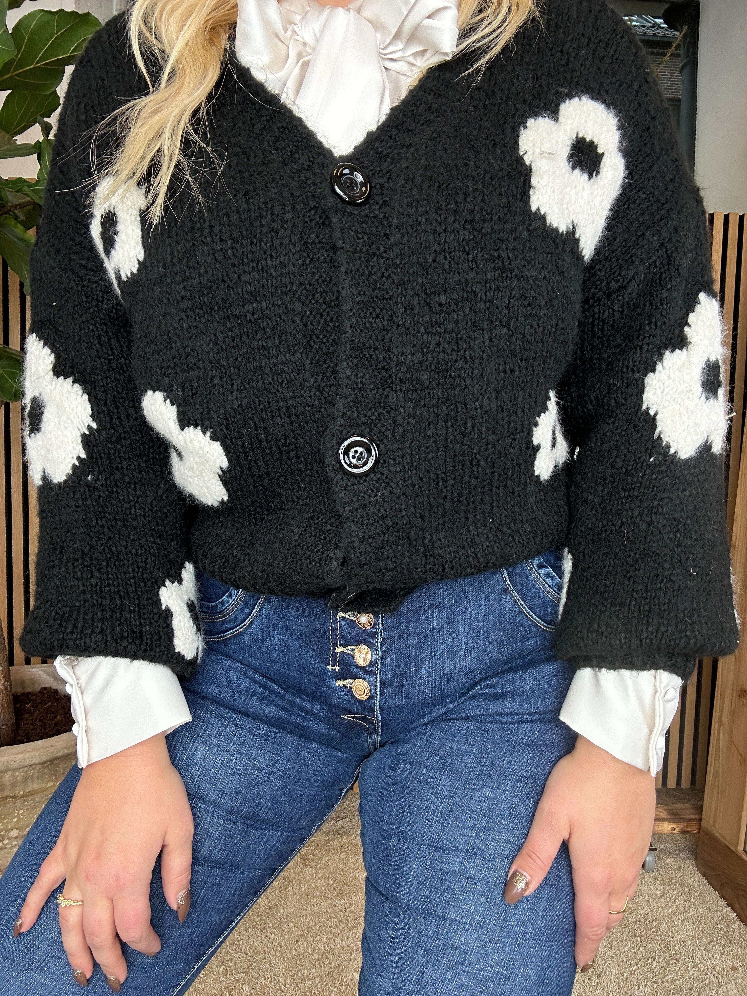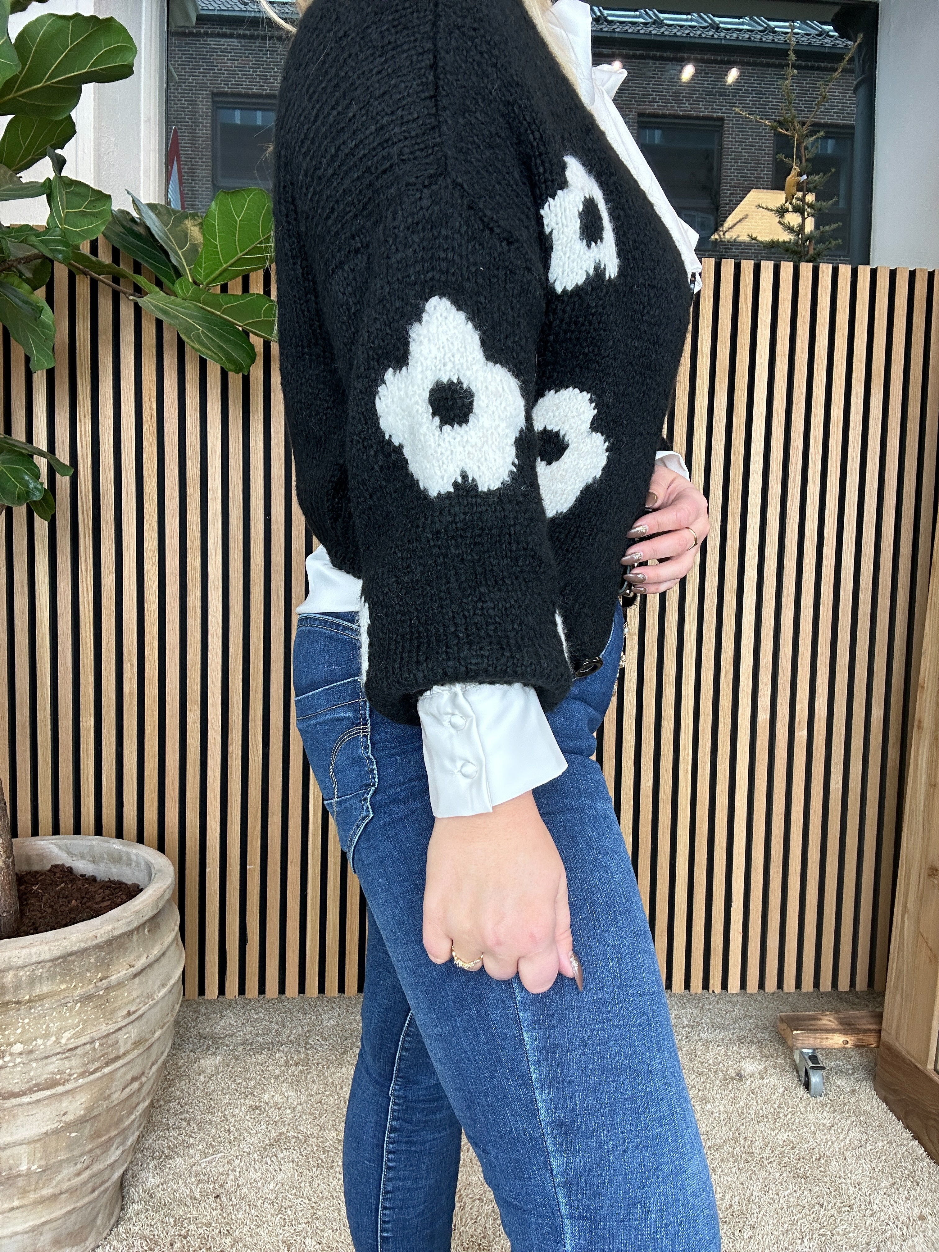 Qnuz - Odette Cardigan Black Flower