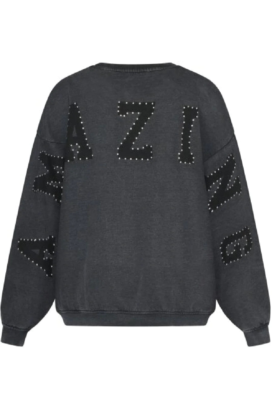 Top cool sweatshirt fra Sisters Point i en mørk grå farve. Sweatshirten har en oversize pasform og fedt "Amazing" tryk bagpå med similisten.