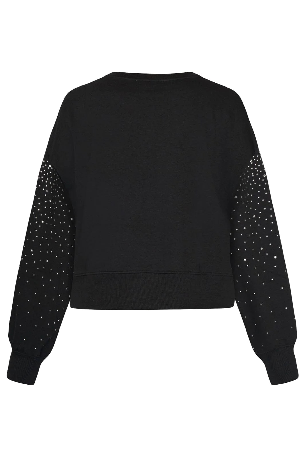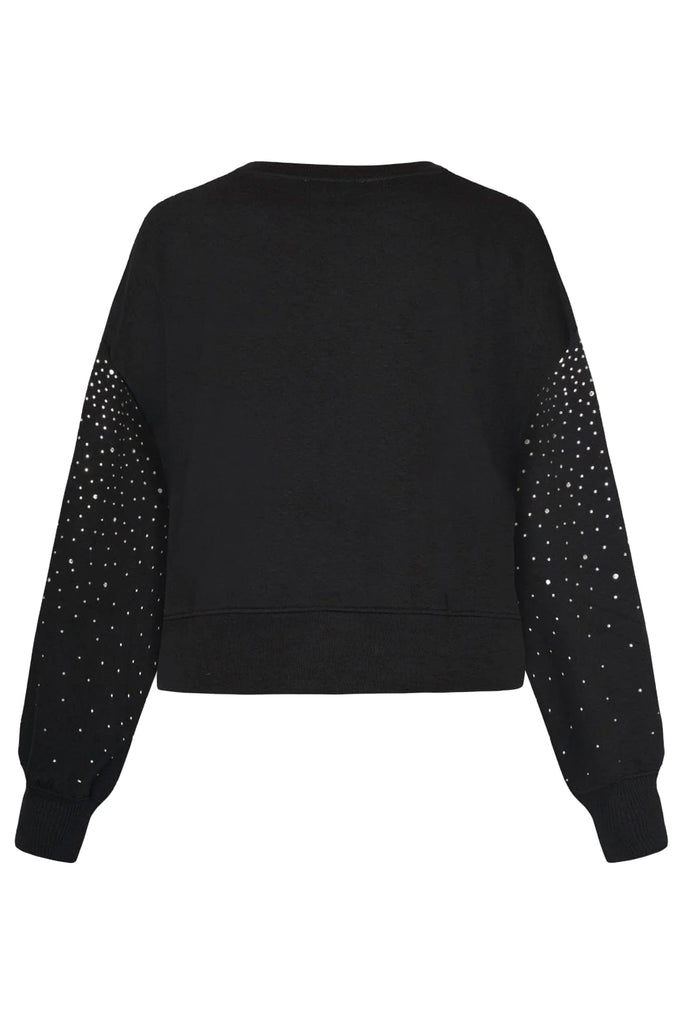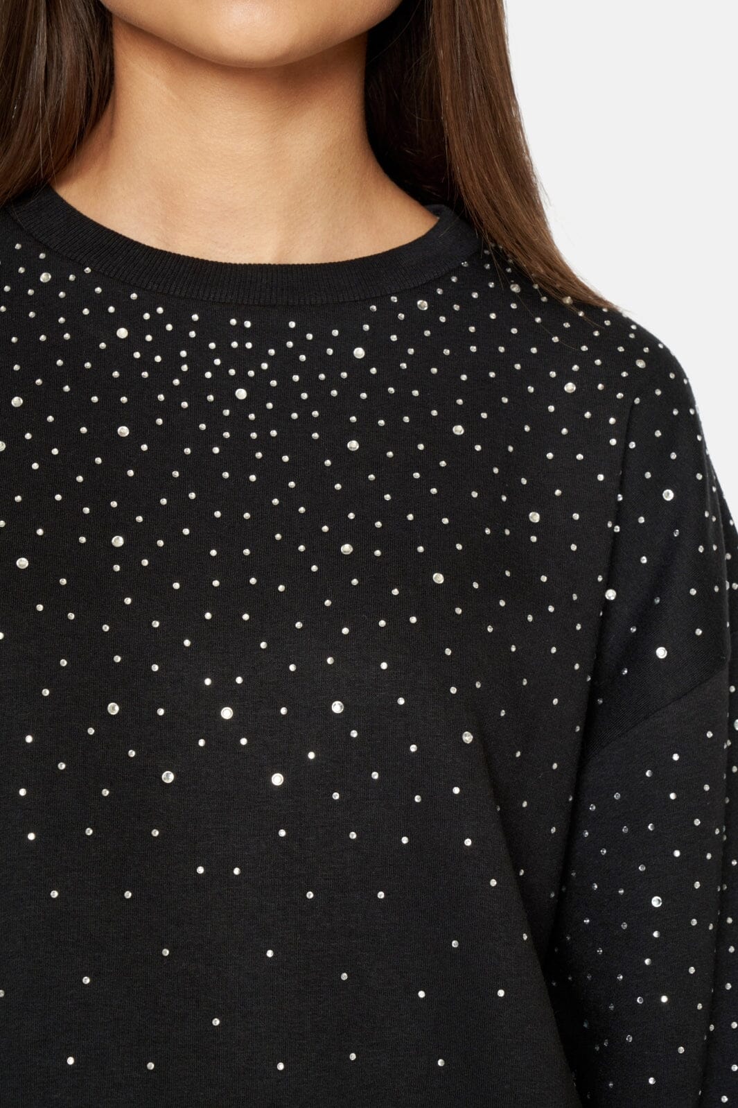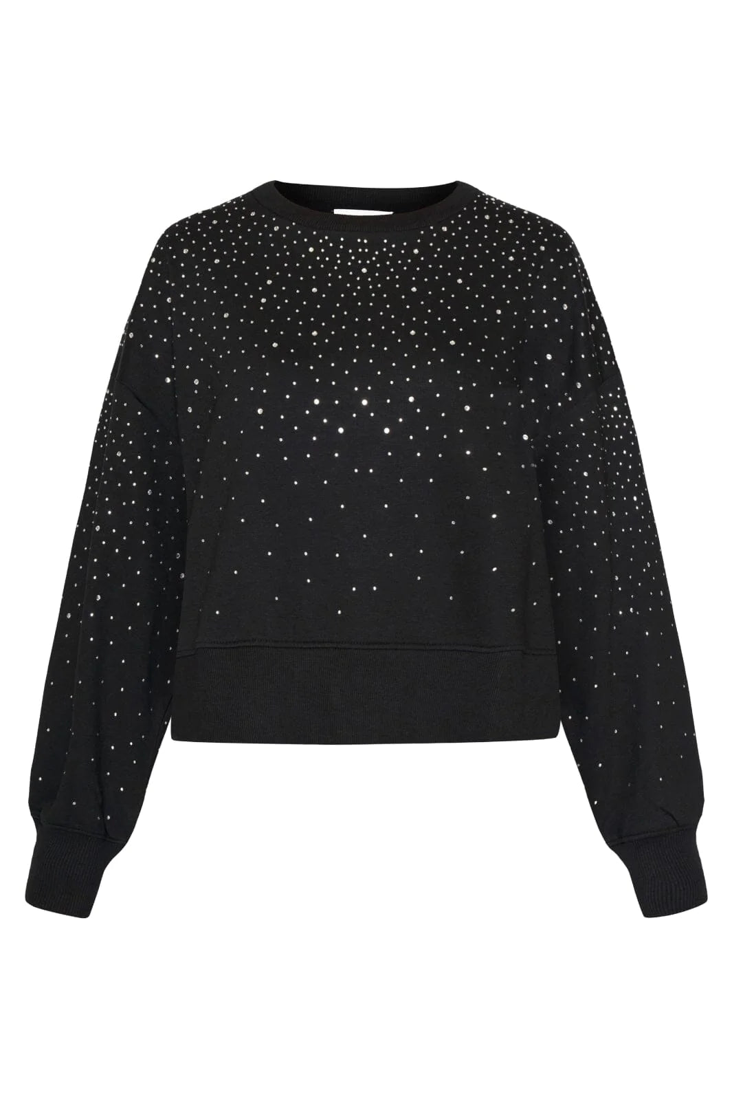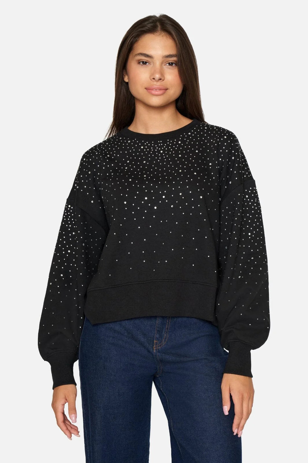 Skøn sweatshirt fra Sisters Point i sort med smukke similisten. Modellen er let oversize og har en losse pasform.