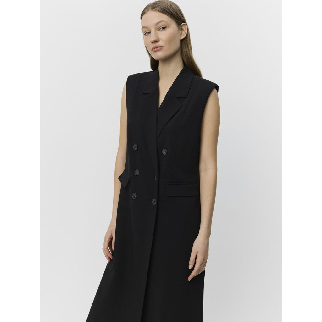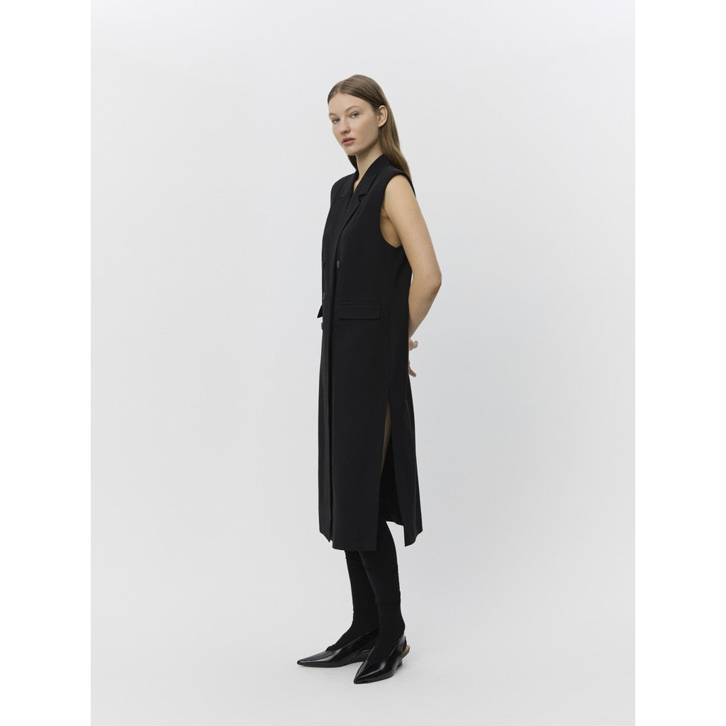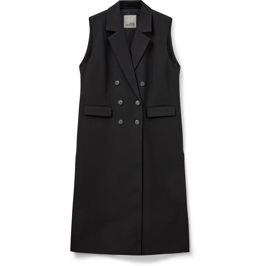 Top cool sort vest fra Sofie Schnoor. Vesten er lang med to høje slidser i siderne og knapper i taljen til at lukke den.