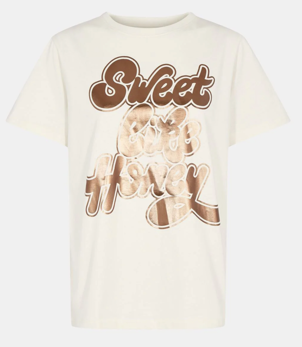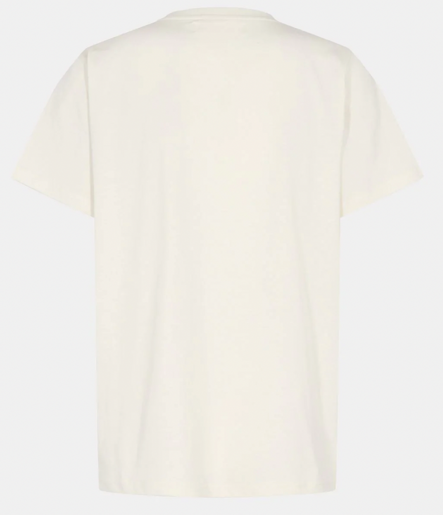 Lækker simpel t-shirt fra Sofie Schnoor i off white med brunt print på midten.