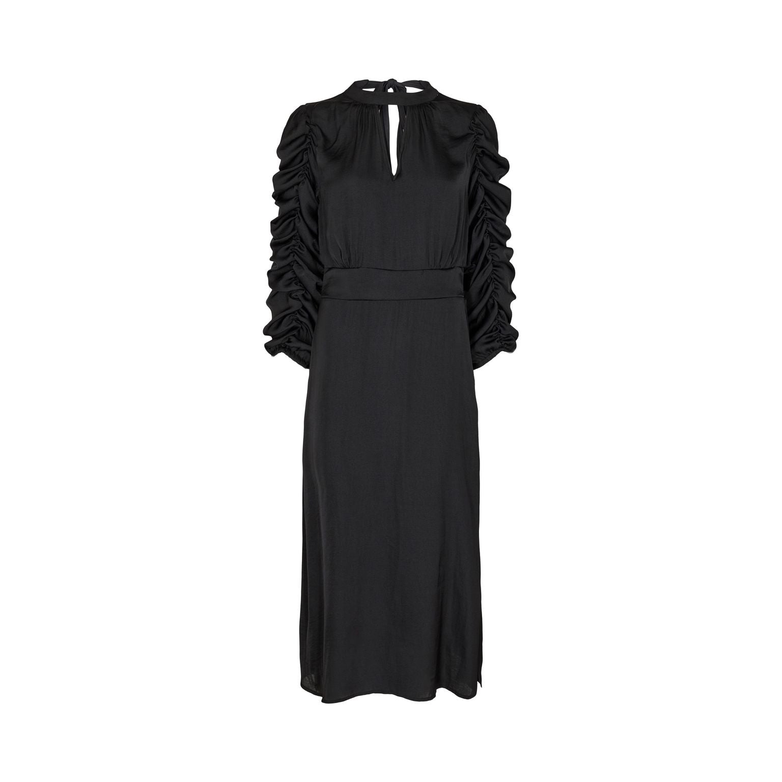 Fin kjole fra Sofie Schnoor. Kjolen har de fineste detaljer ved ærmerne. Kjolen har en fin udskæring foran og lukkes med bindebånd i nakken.