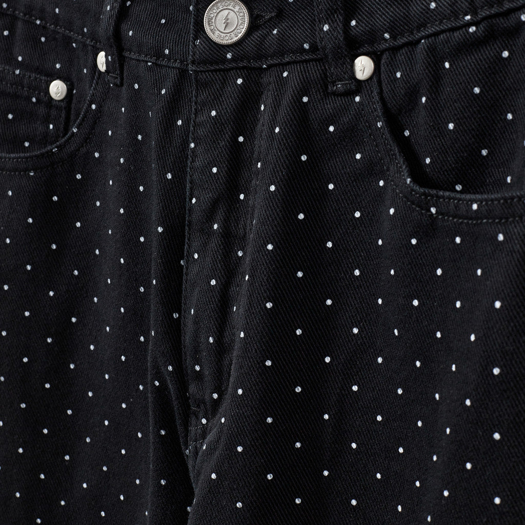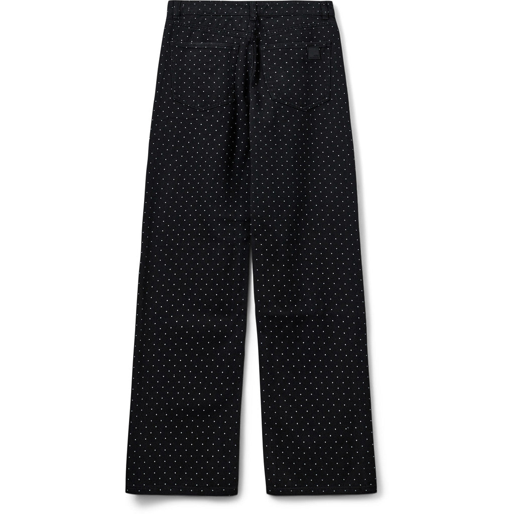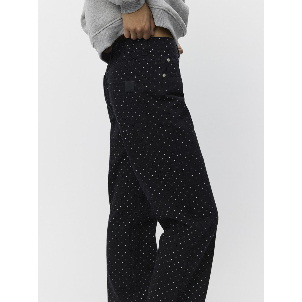 Lækre jeans fra Sofie Schnoor i et klassisk design i sort med hvide prikker. Bukserne har relaxed fit med mid-waist og let vidde i benene.