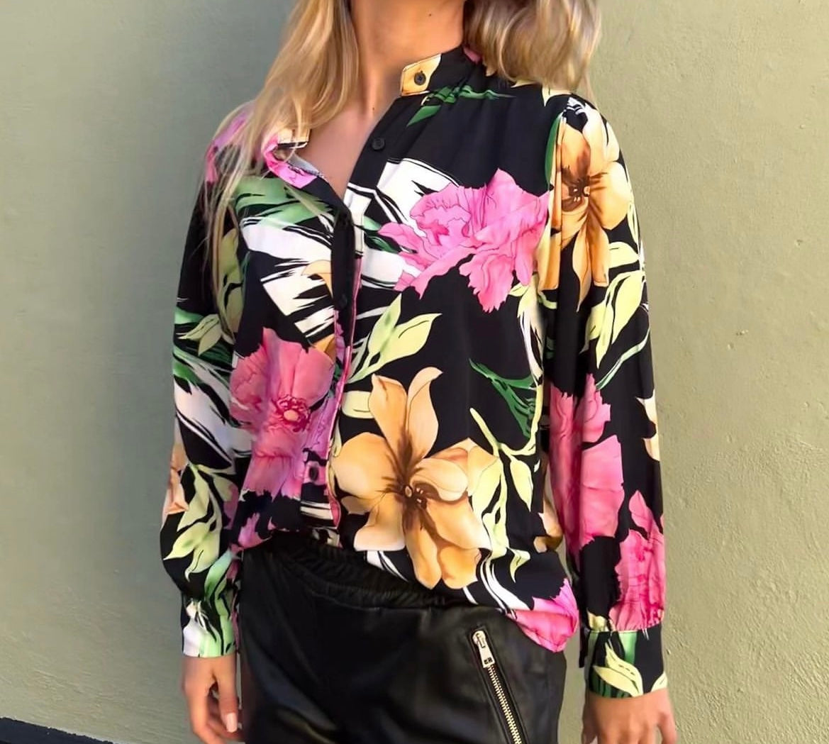 Skønneste viskoseskjorte fra vores nye mærke Sommerstedt. Skjorten kommer i et flot blomsterprint i skønne forårsfarver. Skjorten har kinakrave og lukkes fortil med knapper.