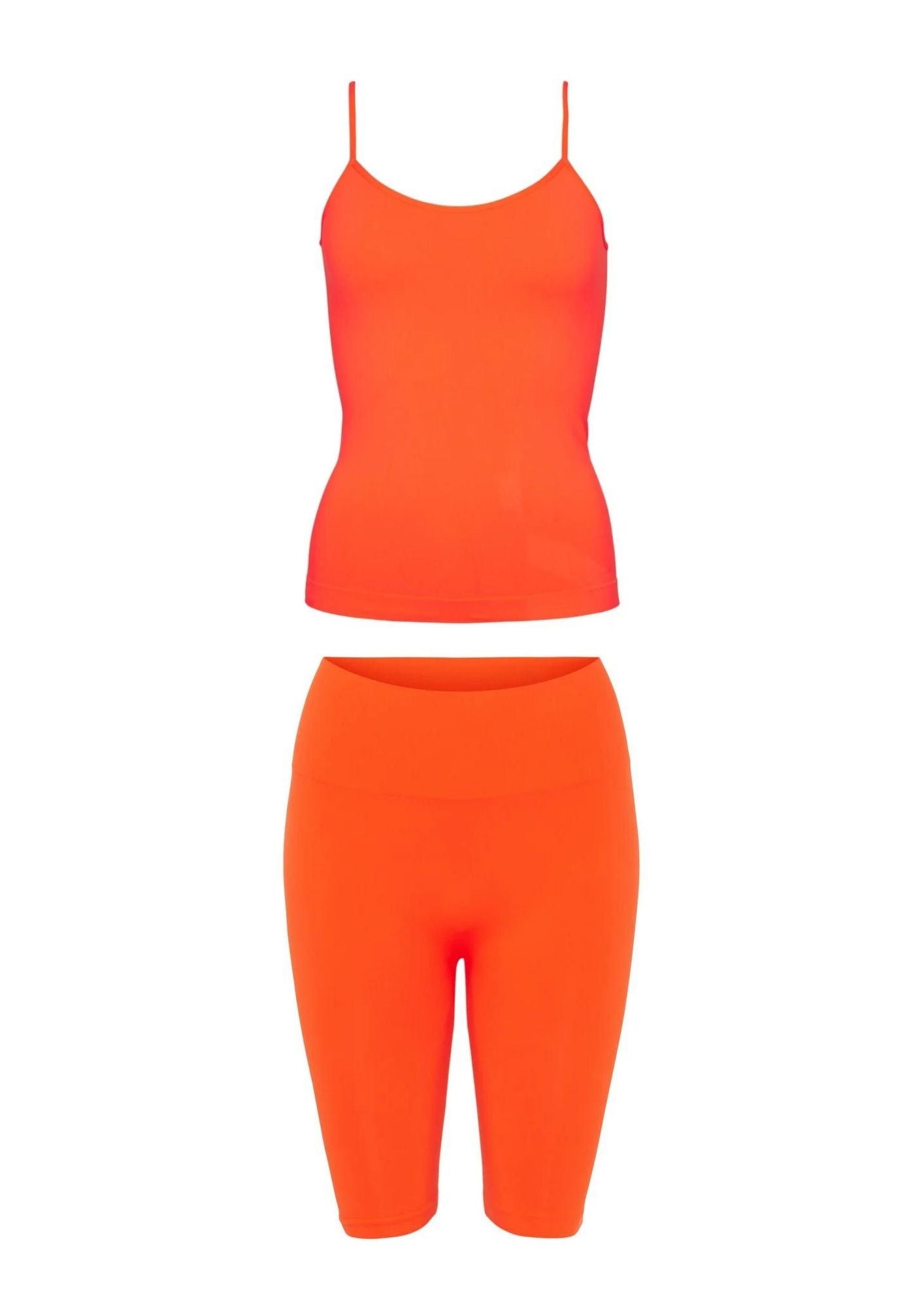 Fin top med tynde stropper + cykelshorts fra Tim&Simonsen.