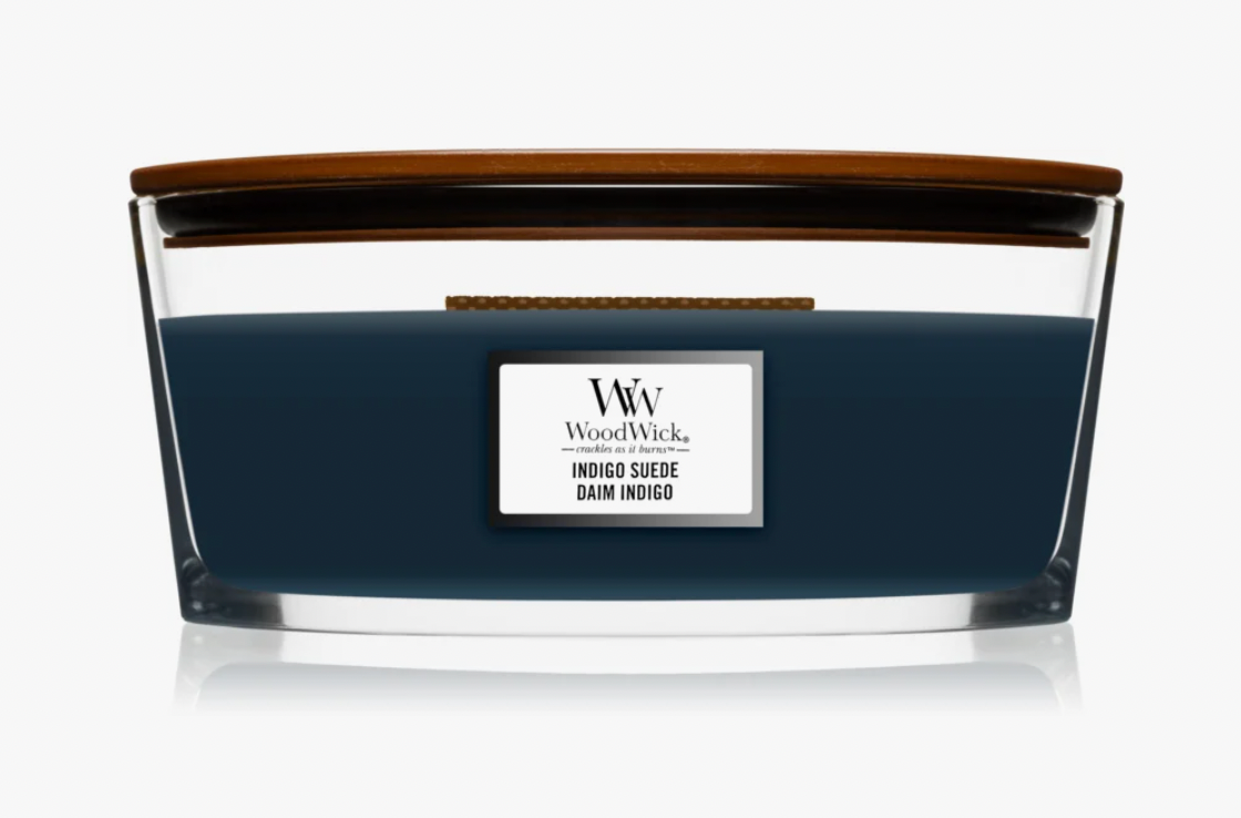 Duftlyset Woodwick Indigo Suede giver dit hjem en skøn duft og skaber på den måde en hyggelig stemning, der gør, at du altid vil føle dig godt tilpas.